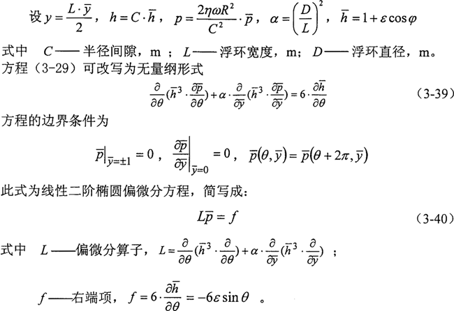 由于將有量綱方程化為無是綱形式后,方程形式主得簡單,便于計算,而獲得的結果又便于推廣到與此軸承相似的各類尺寸的軸承,故,有必要將雷諾方程無量綱化。