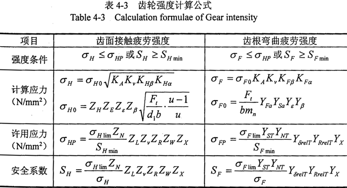 查現(xiàn)代機械傳動手冊選SHmin=1.5和SFmin=1.5。由于樣機的內(nèi)齒環(huán)板和輸出外齒輪均選用45號鋼調(diào)質(zhì)處理,根據(jù)上表提供的有關(guān)公式和樣機的實際結(jié)構(gòu)和工況,確定有關(guān)系數(shù)后,通過計算有表4-4所示的計算結(jié)果。