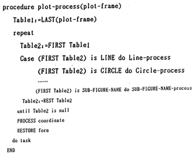 計算機各種語言以及各種繪圖軟件包各具風格,繪圖指令各種各樣,但萬變不離其宗。因而就有可能形成一種通用的機制。作者在這里研制了一種較通用的繪圖指令生成器,其原理是通過分析各種繪圖軟件包的各種繪圖指令,在盡可能廣泛的情況下,使繪圖指令生成器的內部,包含各種繪圖指令。同時,繪圖指令生成器也可以通過編輯或輸入的方法進一步擴充繪圖指令?梢酝ㄟ^二種方式改變輸出繪圖文件的格式:一是通過編輯修改輸出語句格式;二是通過教導式的學習方法改變繪圖文件的物出格式,如下過程: