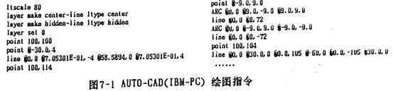 現在,各種計算機語言中,如PASCAL, FORTRAN, BASIC等均帶有圖語句。有諸如直線,圓弧,圓等基本指令(人工智能語言GCLISP versionl.0版因為沒有三角等計算函數的功能,所以沒有圓弧、圓等指令)。相應的,各種計算機輔助繪圖軟件包,如IMB-PC上常用的AUTO-CAD, APOLLO工作站上使用的GPR均含有繪圖的基本單元,如繪制直線、點、中心線、折線、圓、圓弧等墓本圖形命令,進一步的如APOLLO的S7K繪圖軟件包的三維實體造型等功能,其基本圖素如圓柱體、錐體、球體、立方體等;并都具有圖形平移、旋轉、縮小、放大等功能。但是,各繪圖軟件包一般都自成體系,比較難以通用。作者通過對這些軟件的分析,用LlSP編寫了一個比較通用的二維繪圖軟件包,在使用時,只要按所使用的軟件的相應格式填寫,就可輸出相應的繪圖命令。分別介紹如下: