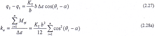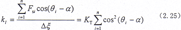 設在ξ方向給小位移△ξ,見圖2.6,則彈性位移為dsi=△ξ|cos(θi-α)|,產生的彈性力Fsi=KTdsi