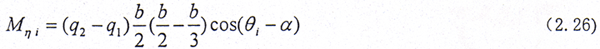 在外載荷較大時,則齒輪聯軸器內外齒面之間接觸良好。設齒面上的載荷是線性分布,其集度分別為q1、q2,如圖2.7所示。在繞η方向給一小轉角△δ,則在第i個齒對產生的扭矩為Mηi。b是穩態時內外齒之間的有效接觸齒寬。