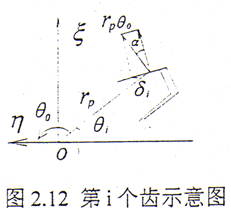 設繞z方向給一小扭轉角△θ,如圖2.9所示,則在第i對齒對上產生的扭矩為△Mci,設rp為節圓半徑。則有