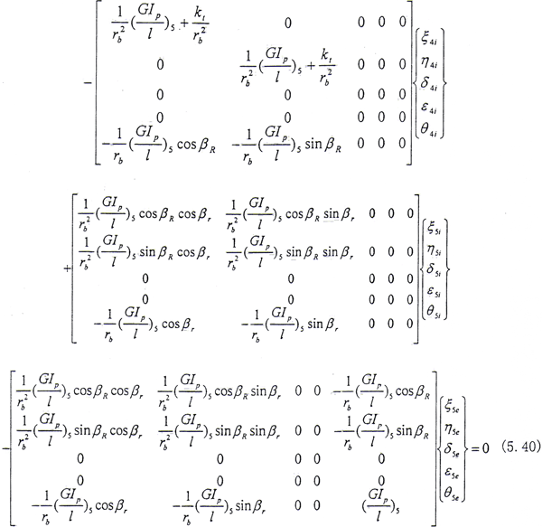 (3)從以上推導得的方程式(5.38)可知,軸承—轉子—齒輪聯軸器系統不僅在彈性項出現耦合,而且存在慣性耦合。從以上的約束關系不難想象,如果考慮了齒輪聯軸器的扭轉內阻尼,那么此時阻尼項也一定會出現彎扭耦合的現象。因此這是一典型的動力耦合問題。