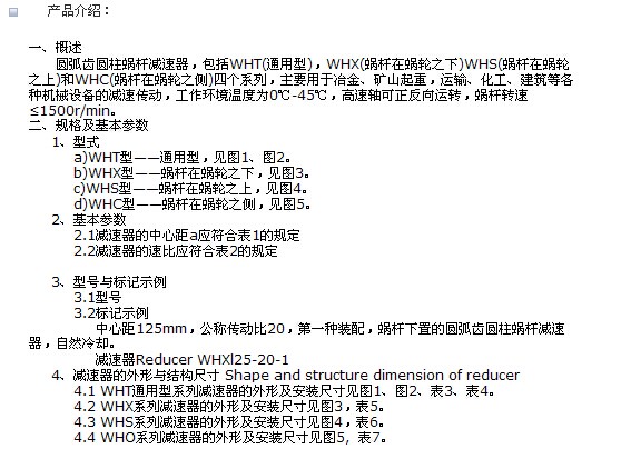WH系列圓弧齒圓柱蝸桿減速器 |