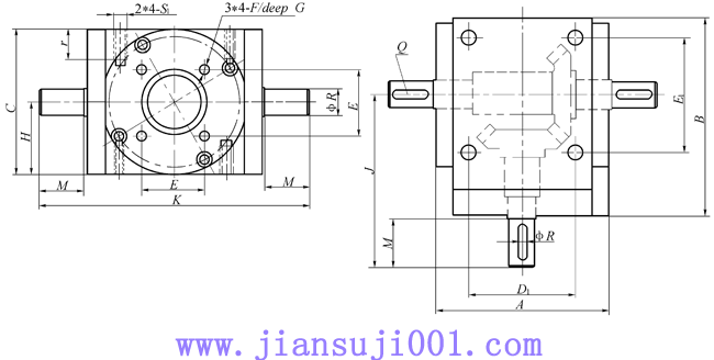 2 | 傳動比:N或L | N:普通速比,可省略不標(biāo), 每輸入1圈升降1㎜ | L:慢速比,需標(biāo)注, 每輸入1圈升降0.25㎜ |