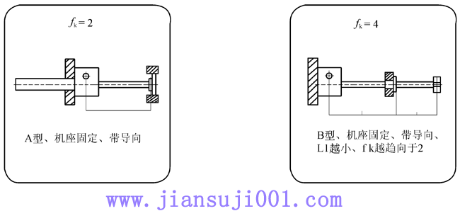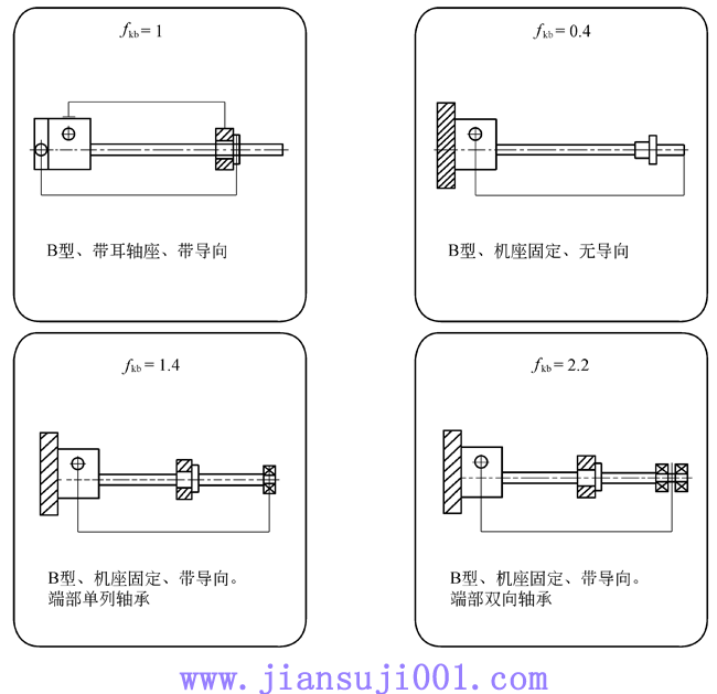 fK:根據絲杠軸承類型和支撐方式給定的修正參數,按下圖確定;