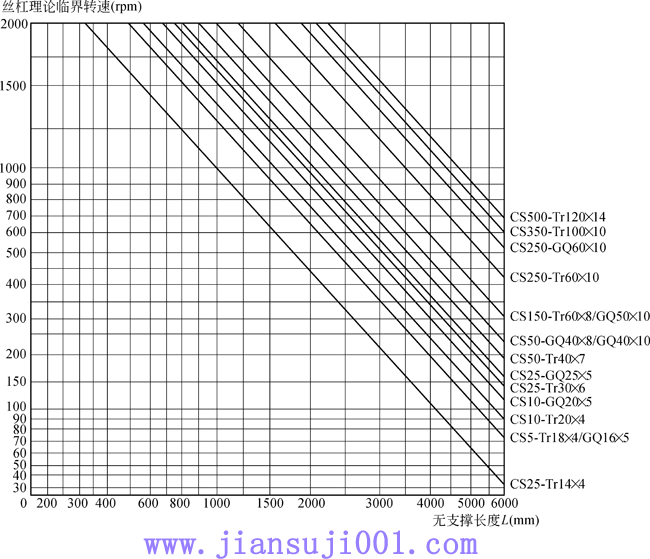 對于B型結構的升降機,在絲杠很細長時,就需要計算絲杠的最大許用轉速,如需要的轉速高于計算值,則需要選擇更大規格的絲杠,同時驗算升降機的扭矩、負載和功率。