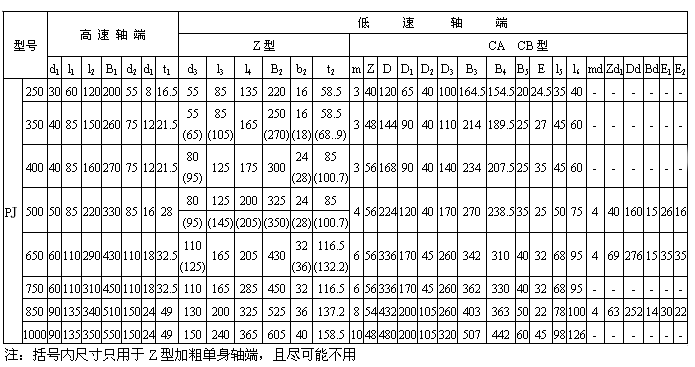 PJ型減速器是由大連起重機器廠于1986年針對機械部要淘汰ZQ型減速器而研制的。它的工作條件、型式、齒輪參數、外形尺寸和安裝尺寸與ZQ型減速器完全相同,可參照ZQ型減速器有關圖表。其中齒輪軸和齒輪的材料改為合金鋼,大齒輪為調質狀態,齒輪軸和小齒輪為表面淬火狀態,即淬硬-調扭副。