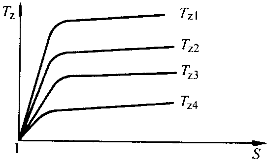 YTDT系列電動機的轉矩、轉速特性(T-S曲線)(見圖1);電動機采用能耗制動時的特性曲線(低速時繞組通以不同的直流電可獲得不同的制動轉矩)(見圖2)。