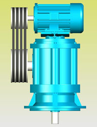 在減速器結構上,出軸軸承跨距特大,增強了剛性;C型軸頭出軸采用空心軸套結構,攪拌軸可直接插入減速器。電動機通過三角膠帶與減速器輸入端相連,能起緩和作用,當需要時可設計成防靜電膠帶傳動或無級變速帶傳動。該系列減速器可直接與TⅠ、TⅡ、TⅢ及TB型搪玻璃反應罐專用機架配套,也可選擇WJ、DJ、SJ及XD、XS系列帶過渡接板的機架。