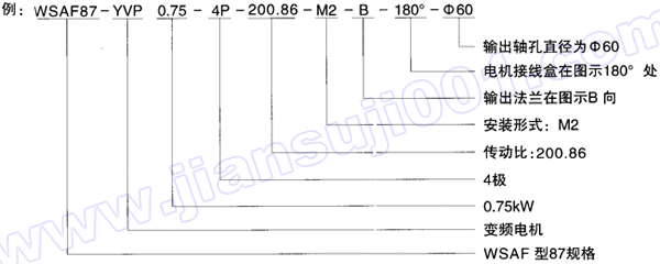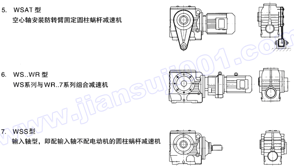 WS系列圓柱蝸桿減速電機類型代號及安裝形式圖釋義