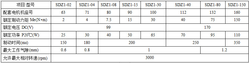 SDZ1 motor brake series of electromagnetic power loss brake for power - on electromagnetic absorption, power - off friction brake. A new YEJ series electromagnetic braking three-phase asynchronous motor is mainly produced by matching with Y series motors. Widely used in metallurgy, construction, chemical, food, machine tools, packaging and other machinery, to achieve rapid parking and accurate positioning, can be used in the power supply safety (anti-danger) braking and other occasions。
