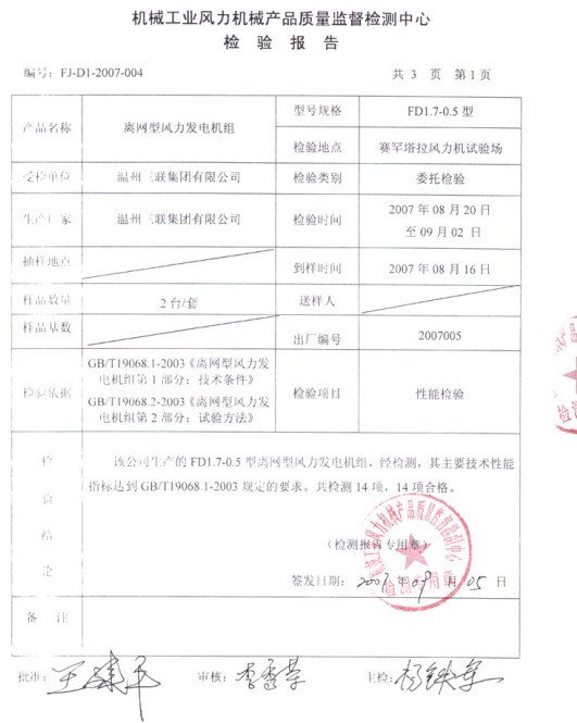 機(jī)械工業(yè)風(fēng)力機(jī)械產(chǎn)品質(zhì)量監(jiān)督檢測中心